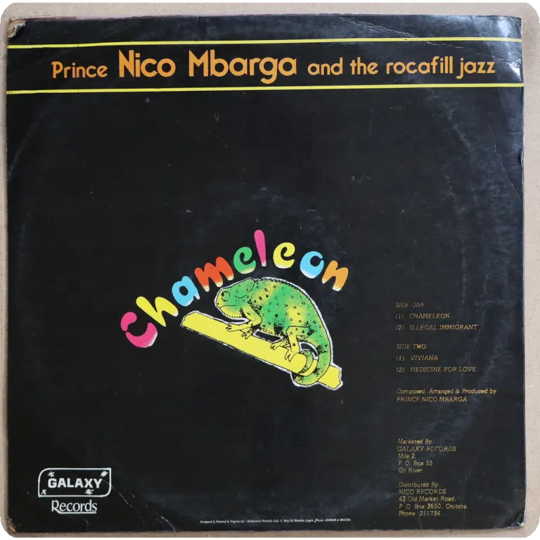 An uptempo dancefloor soukous part 2 on this scarce solo LP by the band who backed Prince Nico Mbarga, on an even rarer Nigerian press when most of RAS lp's were manufactured in the UK. Sleeve has wear, dirt & multiple small peel off, beige water damage along top, warp on top mouth corner, price sticker on front, record plays w/ very reasonable to hardly noticeable noise depending on parts and has multiple surface marks, mainly weak VG, ranges from VG- to VG+