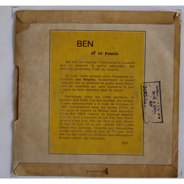 A rumba & a bolero on this mega rare Benin release, sleeve has dirt, bump & mini bite on mouth, shop stamp, beige stain & some ringwear on back, dirt on labels.
