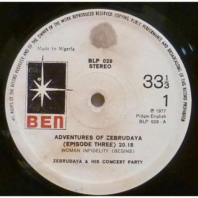 Nigerian highlife meets spoken word theater play on this super rare LP w/ short music parts, sleeve is missing, dirt on labels, writings & reasonable to light cosntant noise.