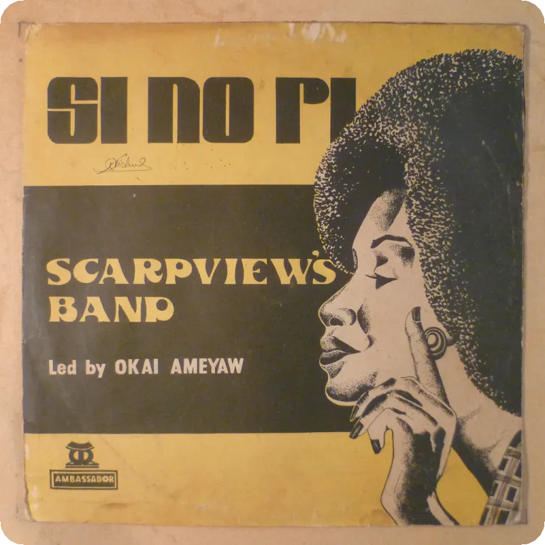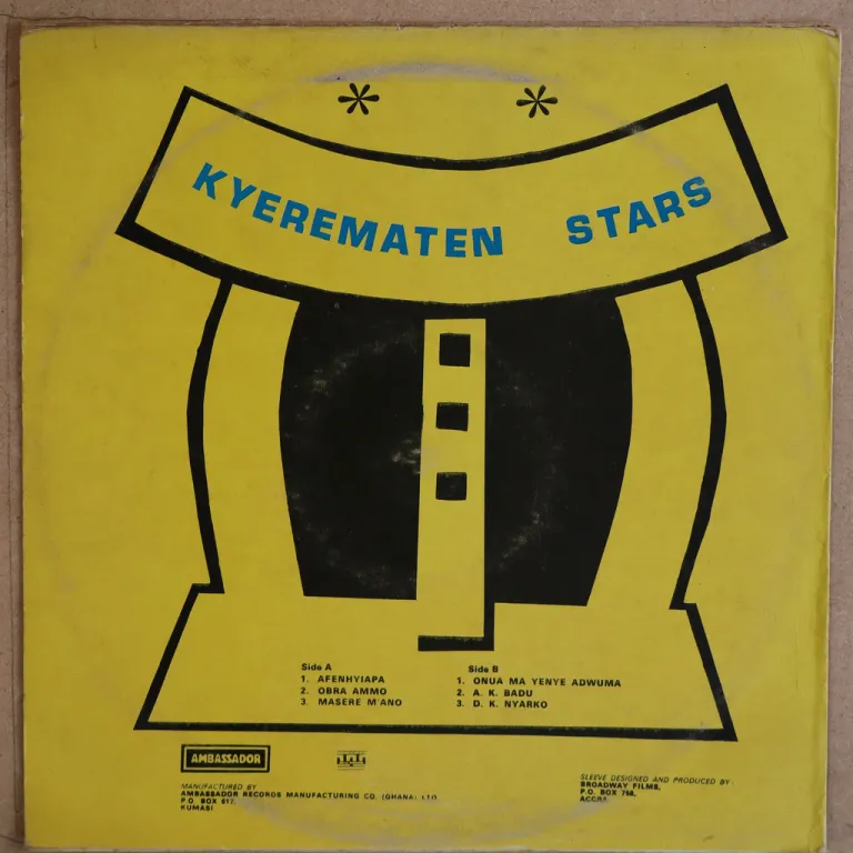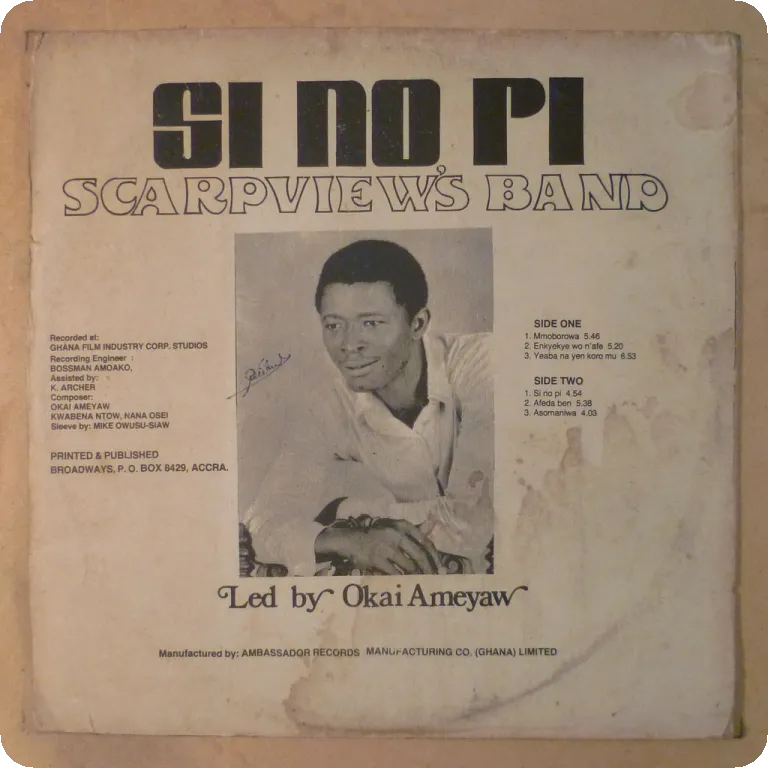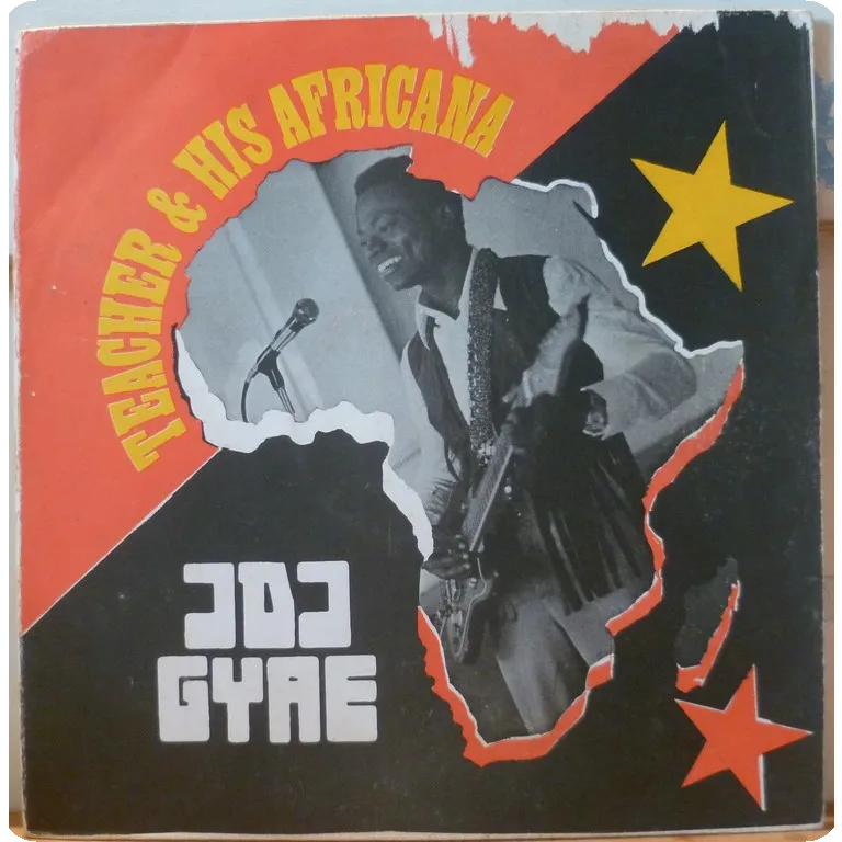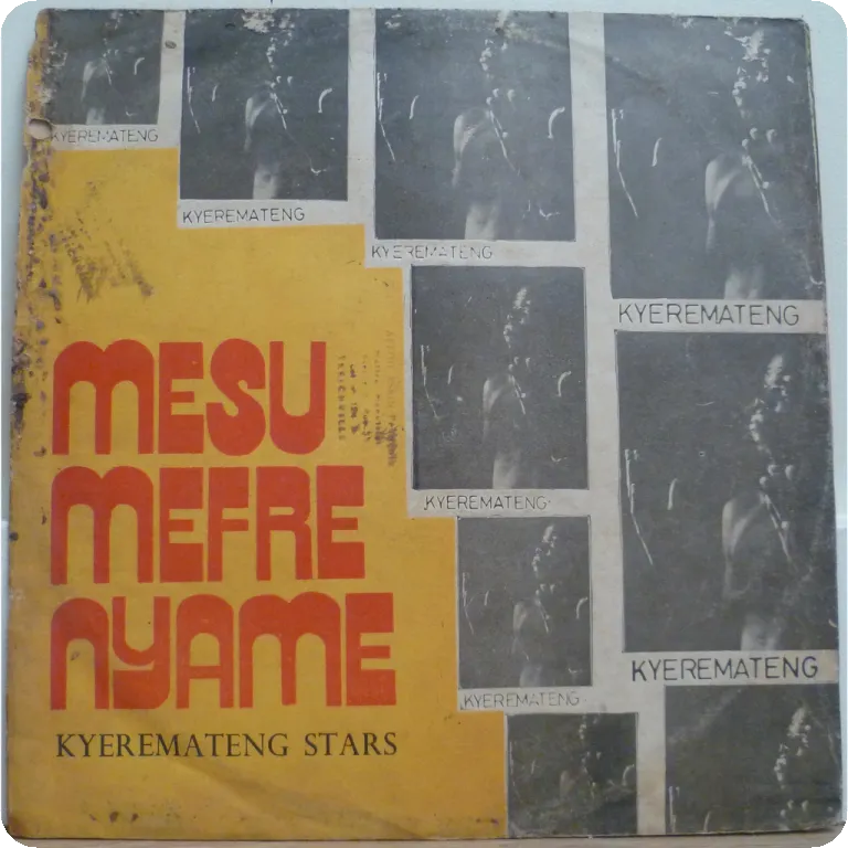 Consistent Ghana highlife LP by one of the leading groups of Ghana, also has 2 uptempo asiko beat, light aging & dirt, peel off on top seam, record plays quite well w/ occasional noise, noisier on B2 (clip 3), VG- to VG/VG+.