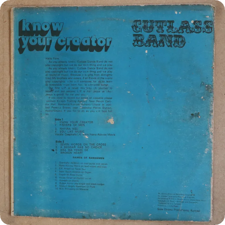 A consistent highlife tune w/ sax & organ solos on this gospel influenced highlife lp rarity recorded by the Ghana feale singer.Some aging & dirt on cover, particularly along top front, record is clean but woohsy from opaque pressing.
