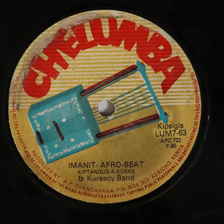 Ungoogleable Kenya folk & benga sung in kipsigis language. Strong dirt & some peel off on labels. Record is VG- to VG, reasonable to light noise from marks, bite on edge didn't reach the grooves, a few clicks