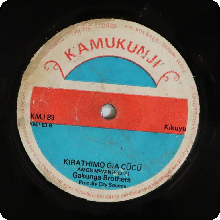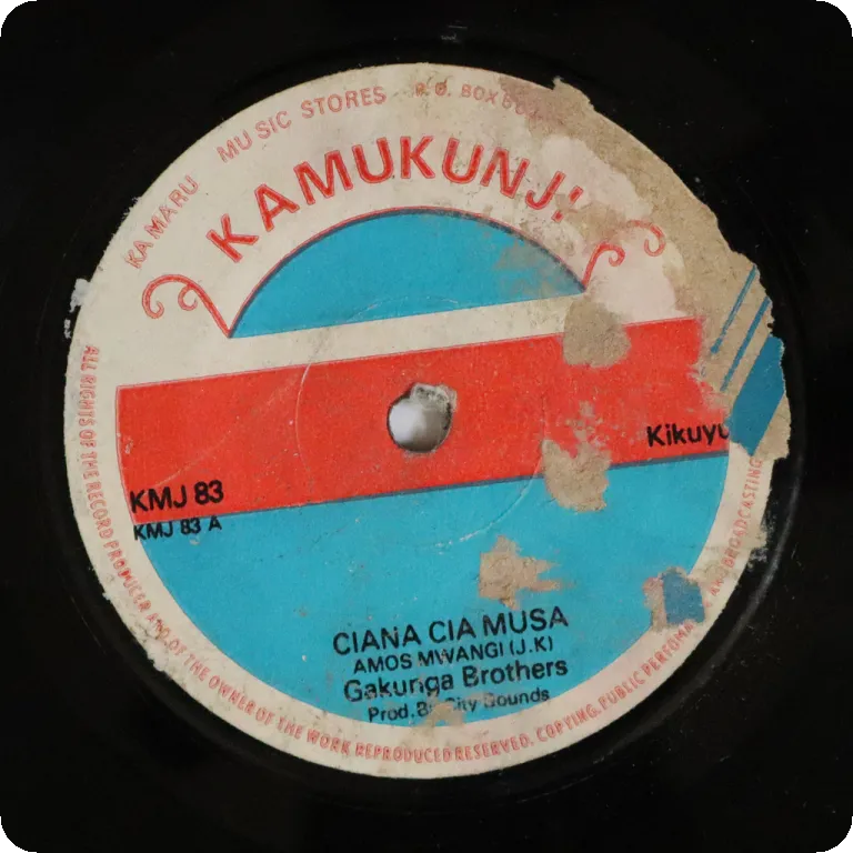 Ungoogleable Kenya dancefloor benga rarity sung in KIkuyu language and with a kick off on part 2. Wear & peel off on labels. Record is VG- w/ reasonable to light noise from marks, bite on edge but