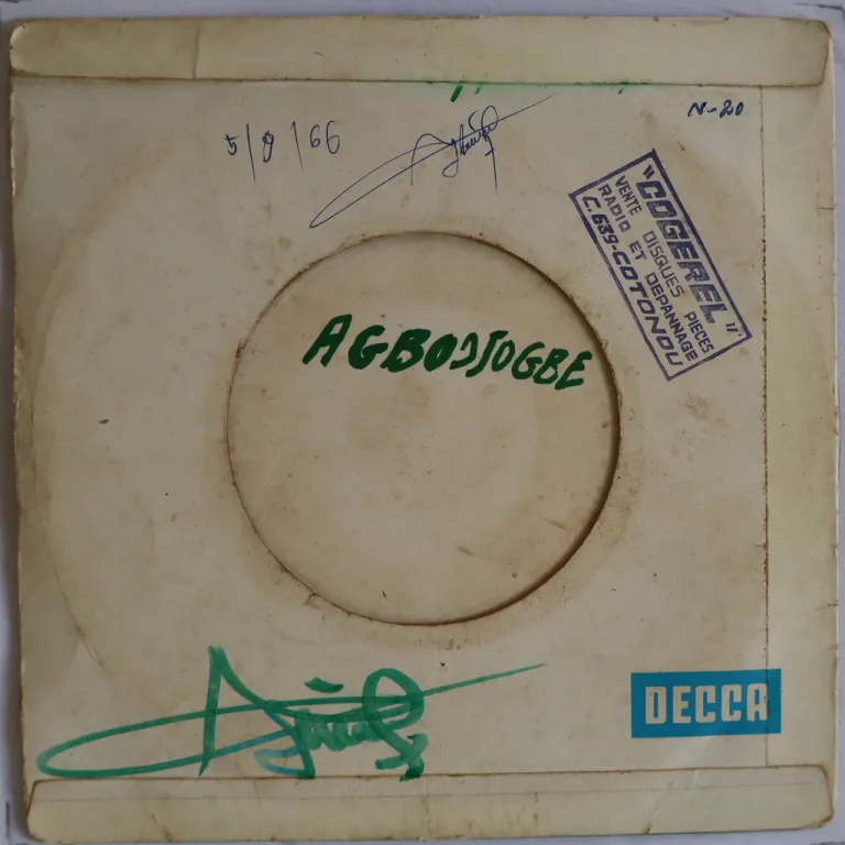 Mellow 60's rumba rarity by one of the legendary Congolese orchestras, sleeve has wear, writings & shop stamp on back, writings & sticker residue on labels, record has marks & light to extremely light noise, solid VG- to VG