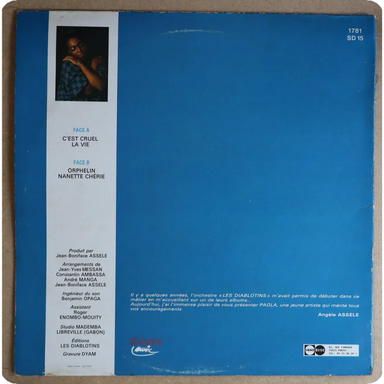 Solid soukous rarity from Gabon featuring uncredited Massako band, never shows up ! Sleeve has minor wear, faulty misprint on A side label, record in nice shape, slightly ruff press & sound recording / mastering.