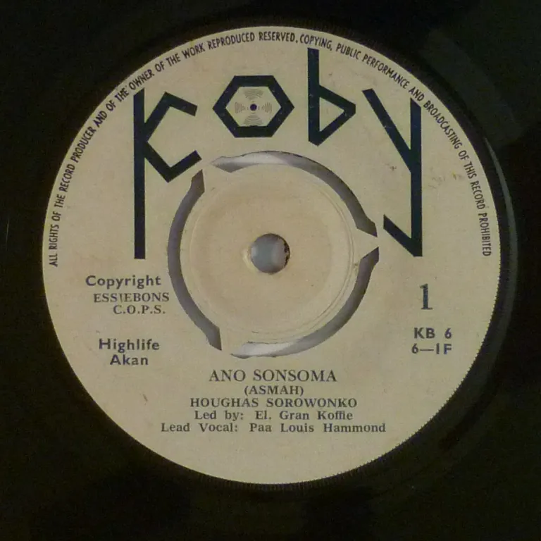 Highlife rarity from Ghana, some dirt on labels, record has constant reasonable to very light noise from marks, VG- to VG.