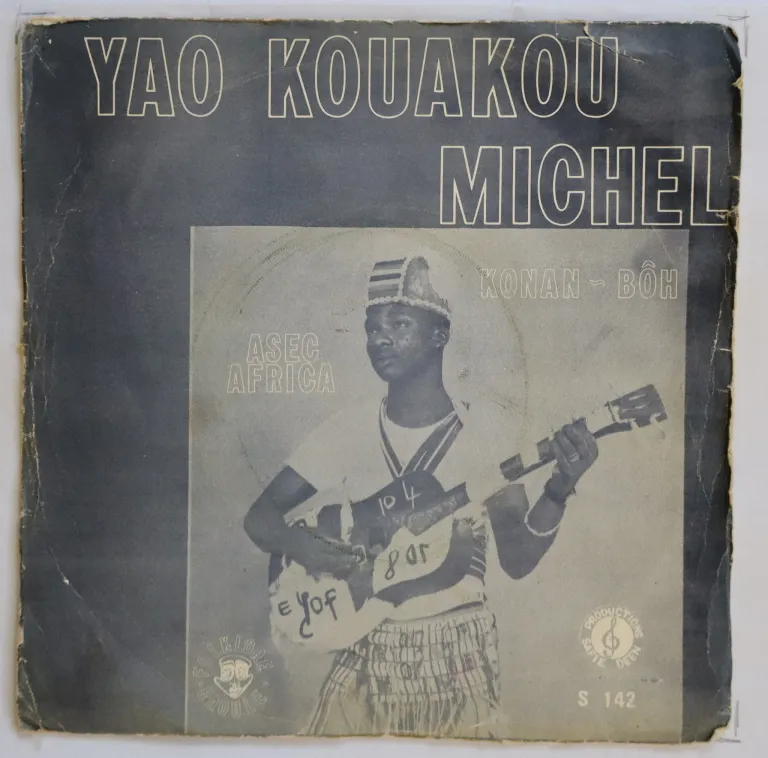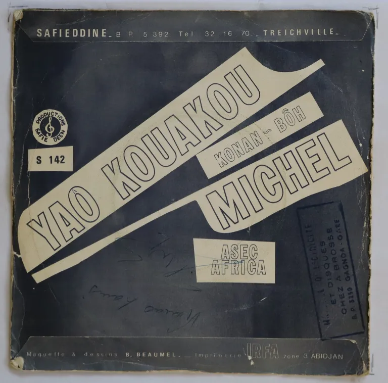 Deep, raw & dissonant acoustic guitar led baoule folk music out of Ivory Coast and a atribute to Abidjan's leading football club. Ultra rare alternate cover press just added by me to the discogs data base. Dirt & wear on cover, shop stamp on back, bump on mouth & spine, writings on back, some ringwear, record has very reasonable to hardly noticeable noise, ranging from weak VG to VERY solid VG