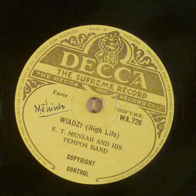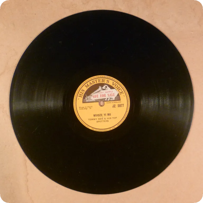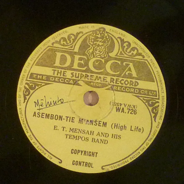 Pre independence Highlife double sider 78 rpm only rarity recorded in the early 50's by the Ghana trumpet legend and his group. Writings & some light dirt on labels, record has constant reasonable noise from marks & groove wear, occasionally noticeable clicks from a more visible mark on last part of B side.