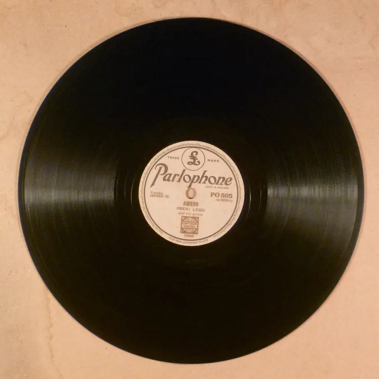 Hardly googleable Nigerian 78rpm w/ male spoken word and a short percussion part at the end of each track, too short to mention at end of A side, while B side's part is available on clip 3 below. light wear & dirt on labels. Record is V-, really clean visually w/ pressing noise & very few marks, but warp though it plays fine on our audio technica 120