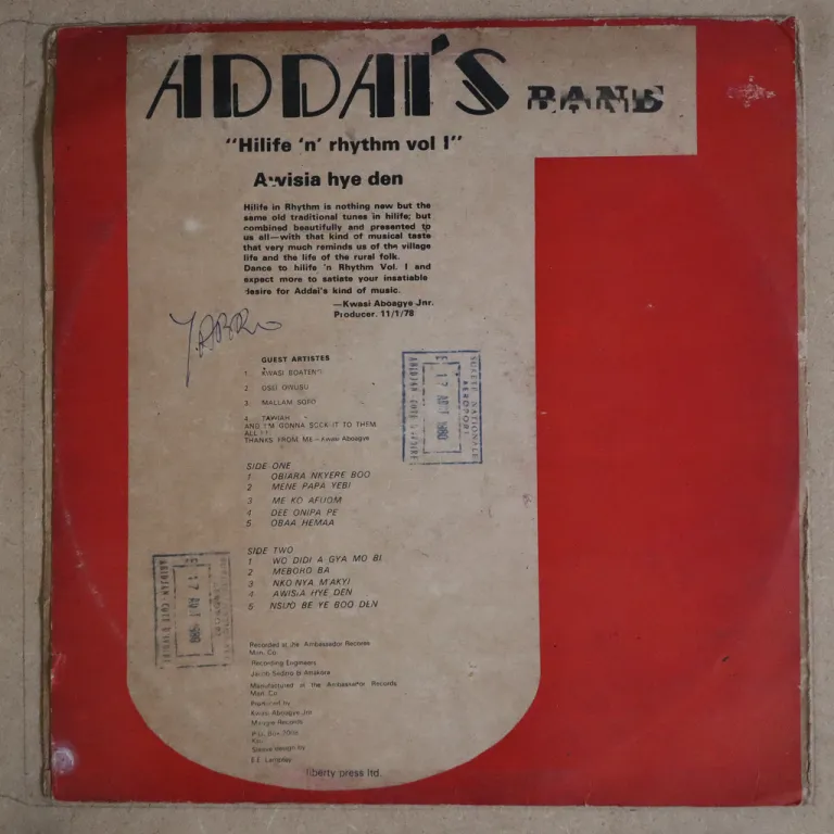ADDAI'S BAND - Awisia hye den - Hilife 'n' rhythm vol. 1