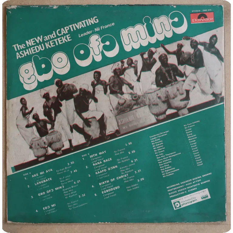 A funky highlife downtempo winner reminding Ebo Taylor "nsuo beye buo den", an afrofunk track on this otherwise consistent 70's Ghana highlife rarity. Sleeve has aging & strong dirt wear, writings, rubber stamps on back, 2" split on bottom, multiple small peel off. Record has very reasonable to hardly noticeable noise from unremoveable dirt & some marks, noisiest part is on A 2 & A3 (check clip 1) with constant light wooshes)