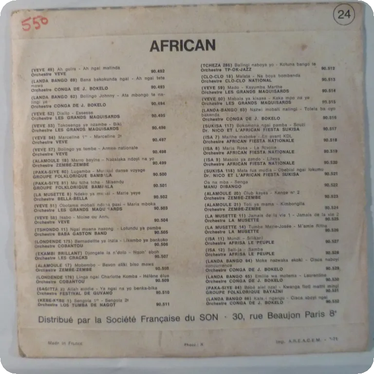 Super funky tropical dancefloor soukous winner mid tempo tune "Sahel Africa" on this scarce original Congo Zaire press of an early recording by the Congolese singer and his group. A consistent 4 tracker all through as well. Minor wear, dirt, writings, mini peel off & beige stain on back, light noise mainly inbetween tracks otherwise hardly noticeable.