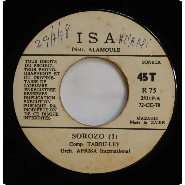 Acoustic vocal & instrumental tunes recorded by this Ethipian group. Wear & aging, writings on cover & labels, 3,5" split on top & bottom. Record has light to hardly noticeable noise, ranges from weak VG to VG+ depending on parts.