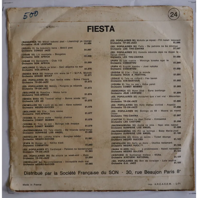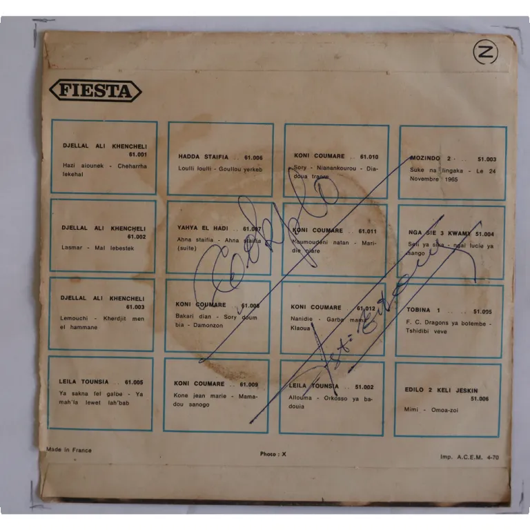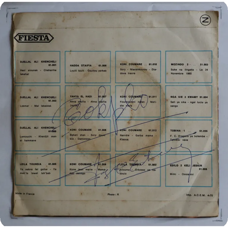 Single only Congo rumba double sider rarity by one of Congo leading 60's groups. Never shows up ! Some wear & creases on cover, rubber stamps & writings on back & B label, writing on A label, record