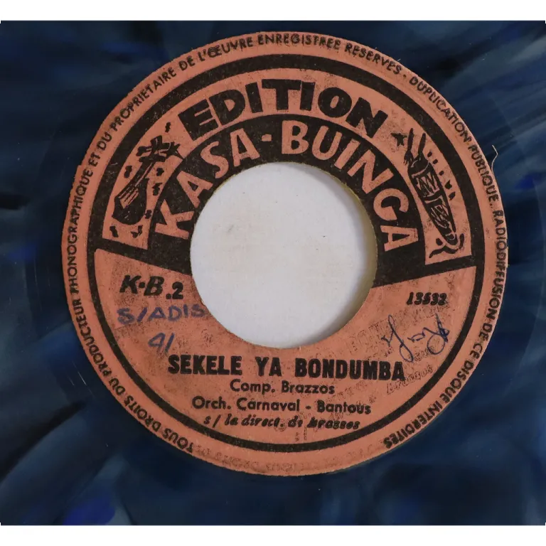Ultra rare single only rumba soukous double sider by this short lived group led by former Bantous guitarist Brazzos, cool marbled blue translucid vinyl pressing, writings on labels. Plays with