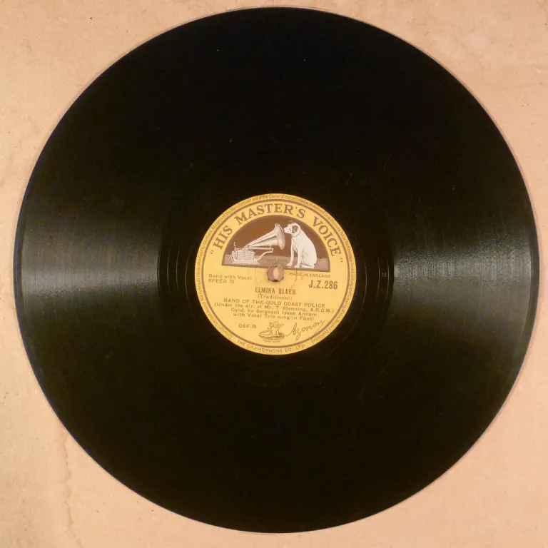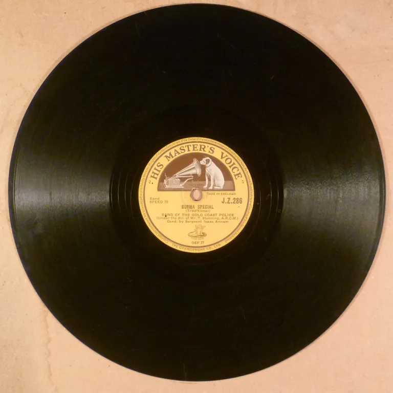 An instrumental march & a blues sung in Fanti as recorded by this Police big band from former Gold Coast, today Ghana. Small writing on B side label, light wear on labels. Record has cosntant reasonable from marks & dirt residues.