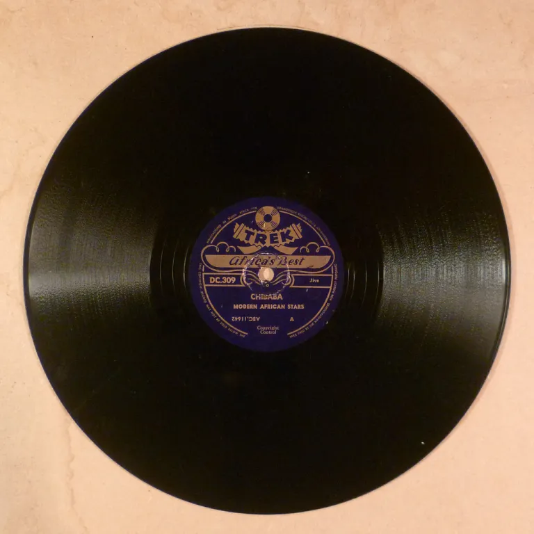 Instrumental sax jive double sider out of Zimbabwe. Record has greyish pressing stains & some storage marks, light noise from both marks & pressing, V- to V.