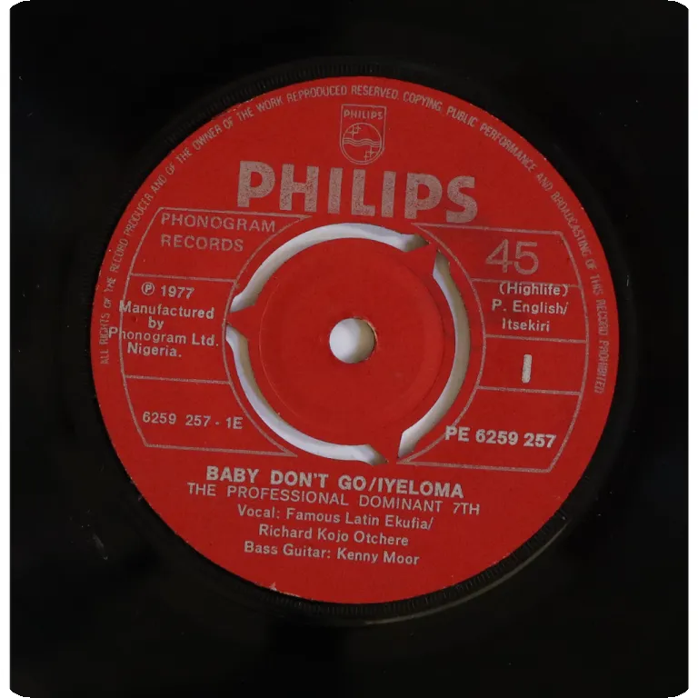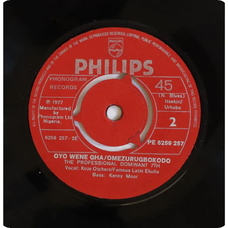 Top notch 60's Nigerian trumpet highlife, 3 tracks are single only. Sleeve w/ light aging & dirt, small writings on back cover & labels. Record plays solid VG- to VG, has slightly noisy marks in parts, still plays quite cool.