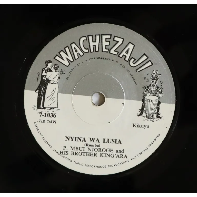 Male / female vocal duet w/ guitar as recorded by the Kenyan kikuyu legend, B side has a roosty folk tune w/ guitar & sticks & spoken word male monologue on intro. Minor noise from thin marks.