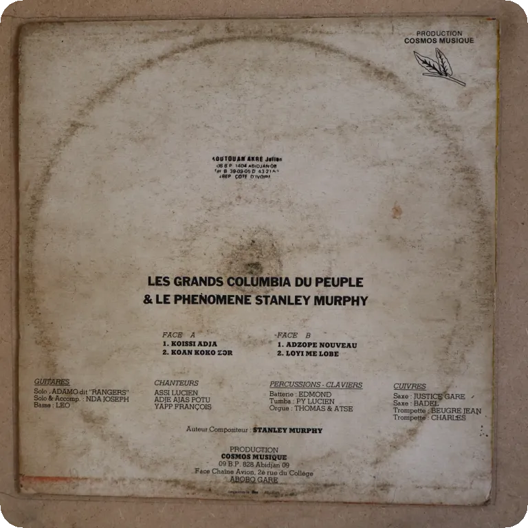 Super scarce and consistent LP by one of Ivory Coast's leading 70's/80's groups, check the highlife title tune or the hypnotic Assi faustin Bir among others. Sleeve has serious damage, strong dirt