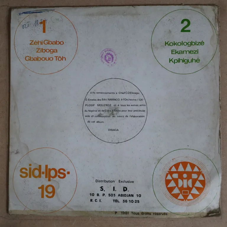 A tropical dancefloor soukous & several afro pop tunes from Cote d'Ivoire, and surely on the gentleman's rarest albums. Sleeve has aging/dirt, small peel off on top front, writings on back, record has