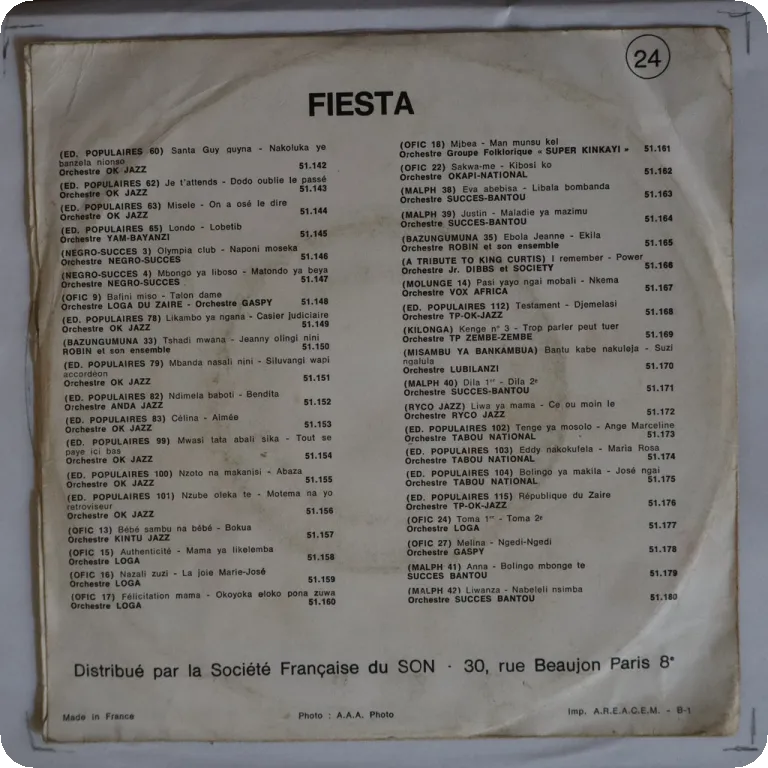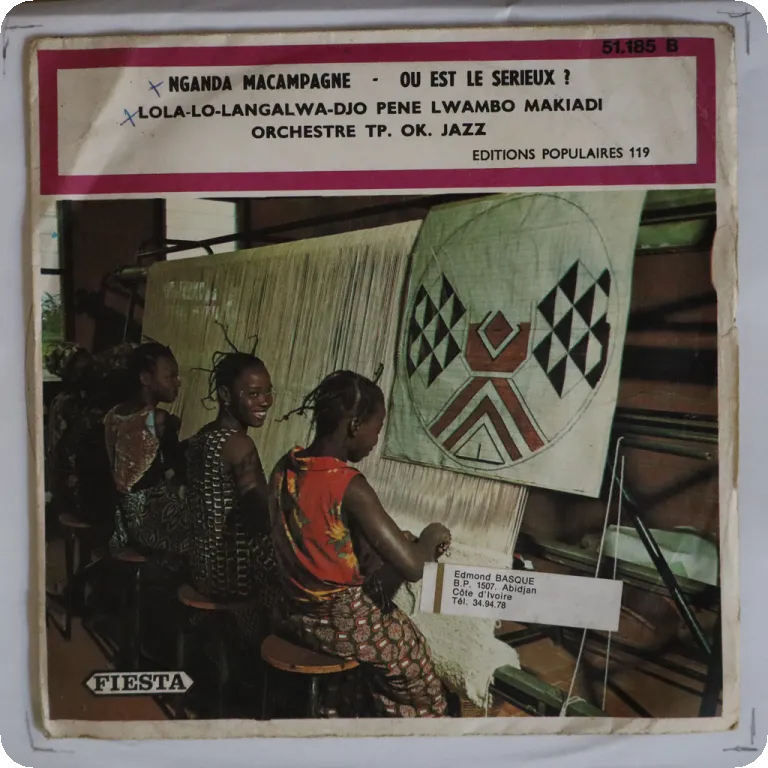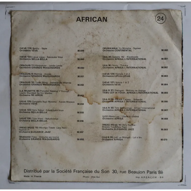 Check the funky rhythmic part 2 on both soukous tune recorded by this lesser known band out of Congo, dirt wear & aging on cover, light brown water damage, record has very light to hardly any noise.