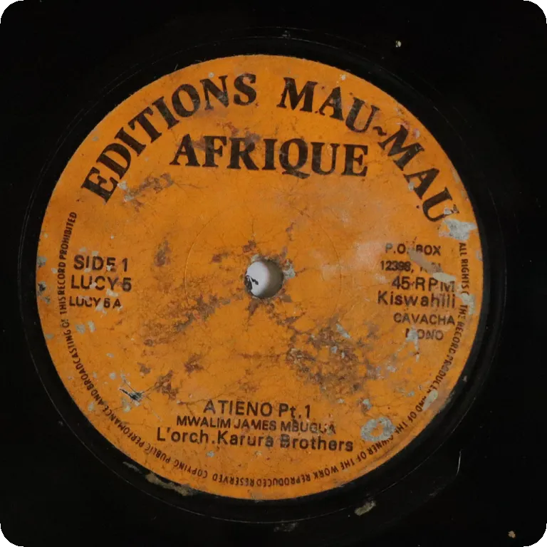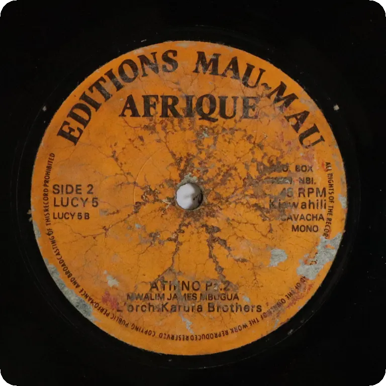 Hardly googleable Kenya benga sung in kikuyu language. Dirt & mini peel off on labels. Record is VG- to VG, reasonable to hardly noticeable noise from marks