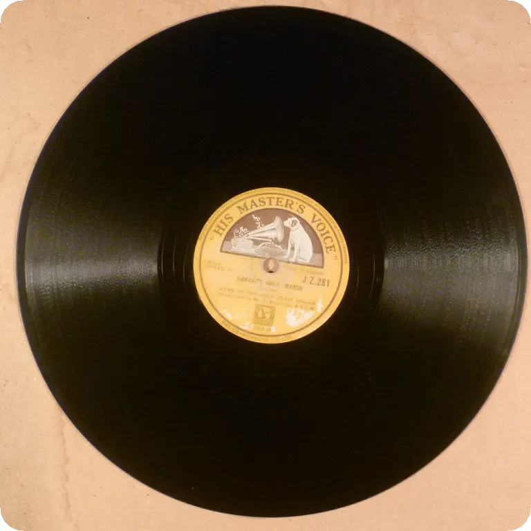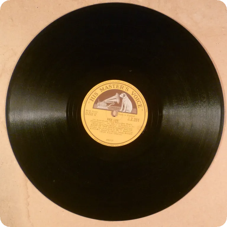 Hardly googleable highlife & march recorded by the Gold Coast police band, from what is now Ghana. Likely recorded in the late 30's or early 40's. Peel off on A label. Record is V- w/ pressing noise &
