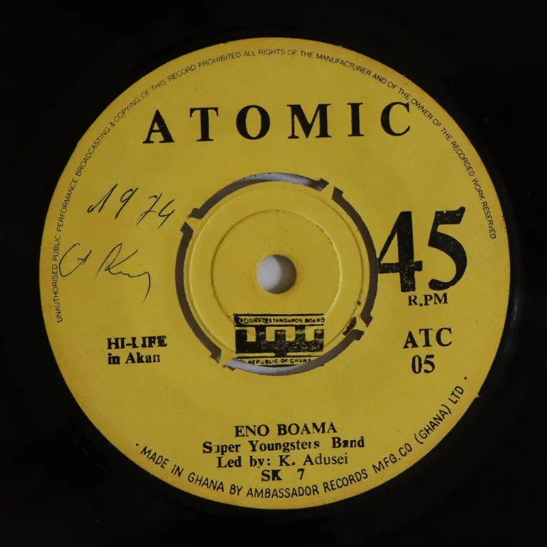 Check the highlight tune on B side to this Ghana highlife double sider rarity. Light wear & writings on labels. Record is G to VG-, A side (clip 1) has a serious amrk causing clicks for more than the first minute, then plays VG- and so does B side's highlight track, w/ reasonable to light noise from numerous marks