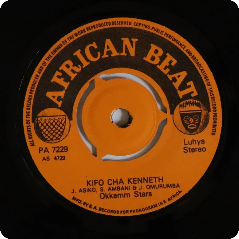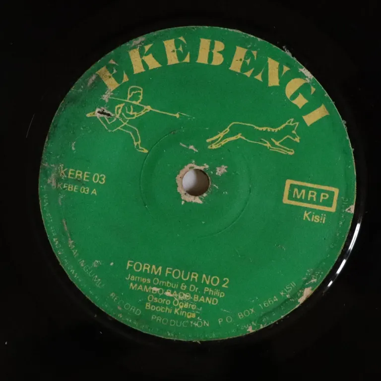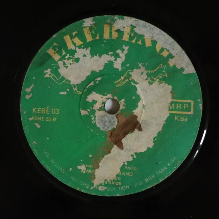 Ungoogleable uptempo dancefloor Kenya benga double sider rarity sung in Kisii with a kick off on last part. Strong wear & peel off on labels. Record is VG- to VG+, with reasonable to hardly any noise from marks