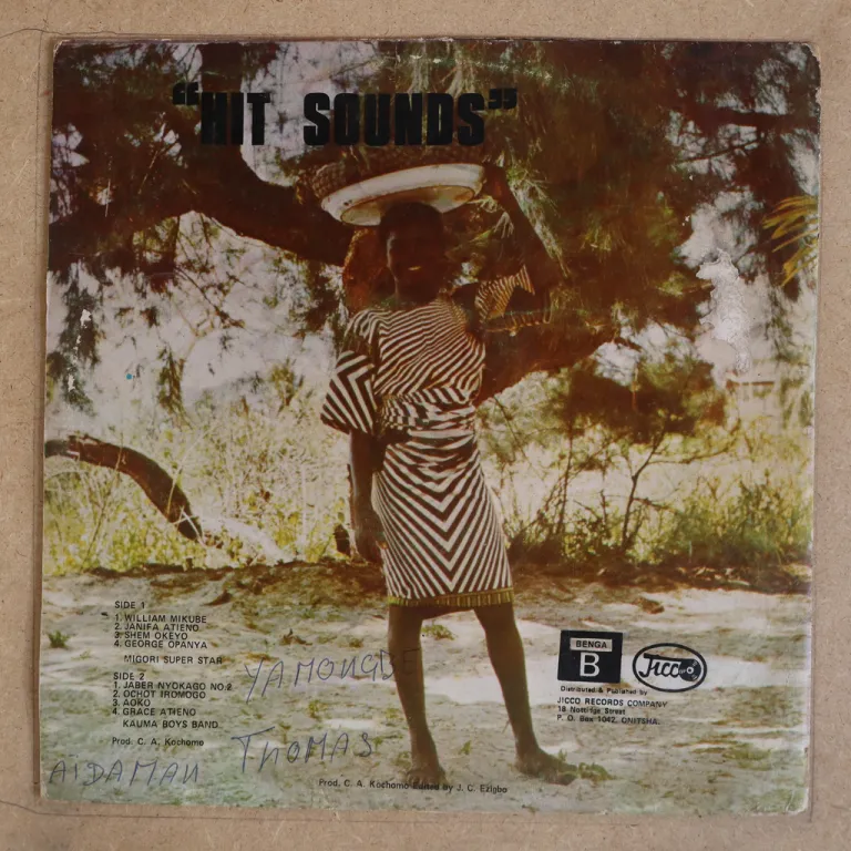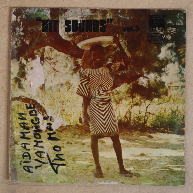 Afro synth frantic floor filler aon this off the radar sure scarce release by Benin artist. Sleeve has strong aging & dirt, large brown water damage on half bottom, peel off & paper stuck, large