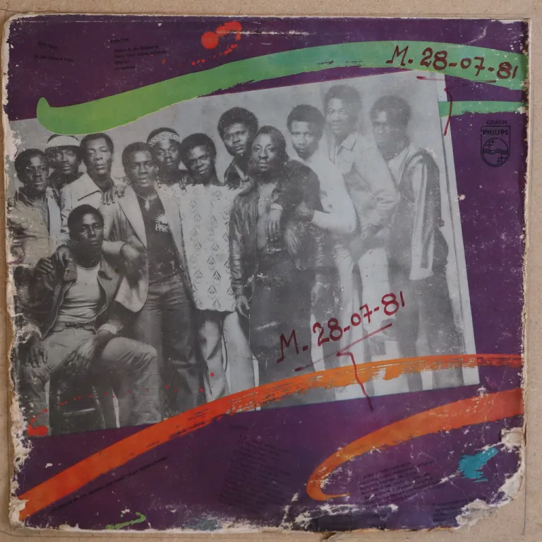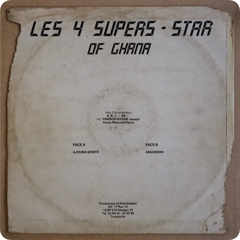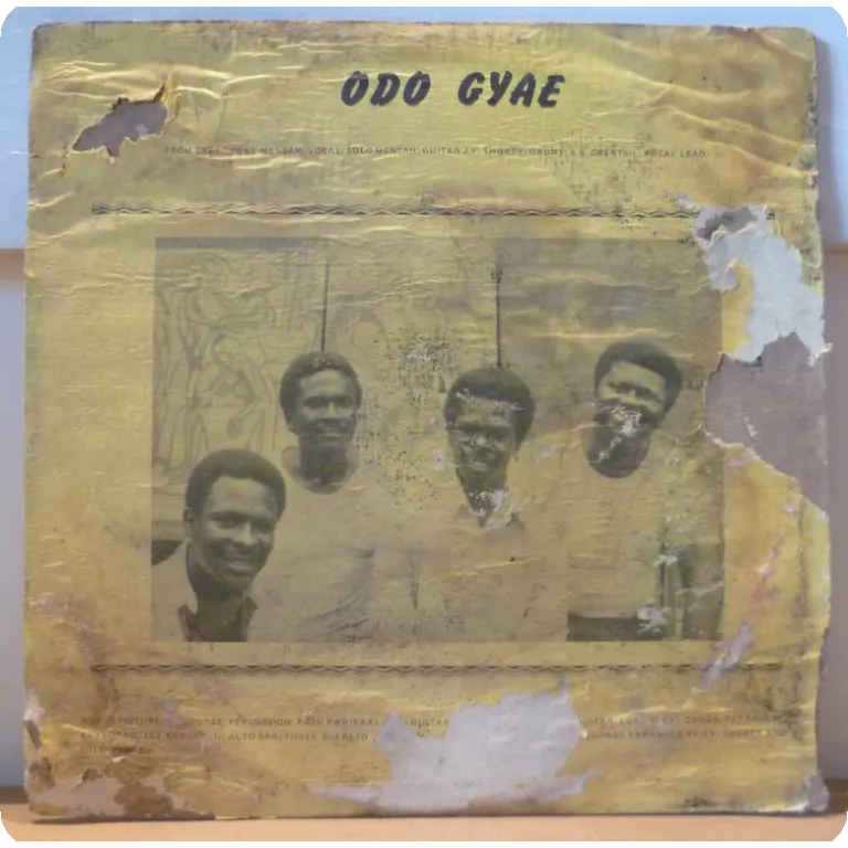 Indemand tropical dancefloor, soukous influenced hybrid highlife, LP. Sleeve has strong aging/wear, peel off & large writings, bites on bottom mouth & spine, 6" split on spine & bottom seam, mini peel off & small writings on labels, record has reasonable to light noise from numerous marks