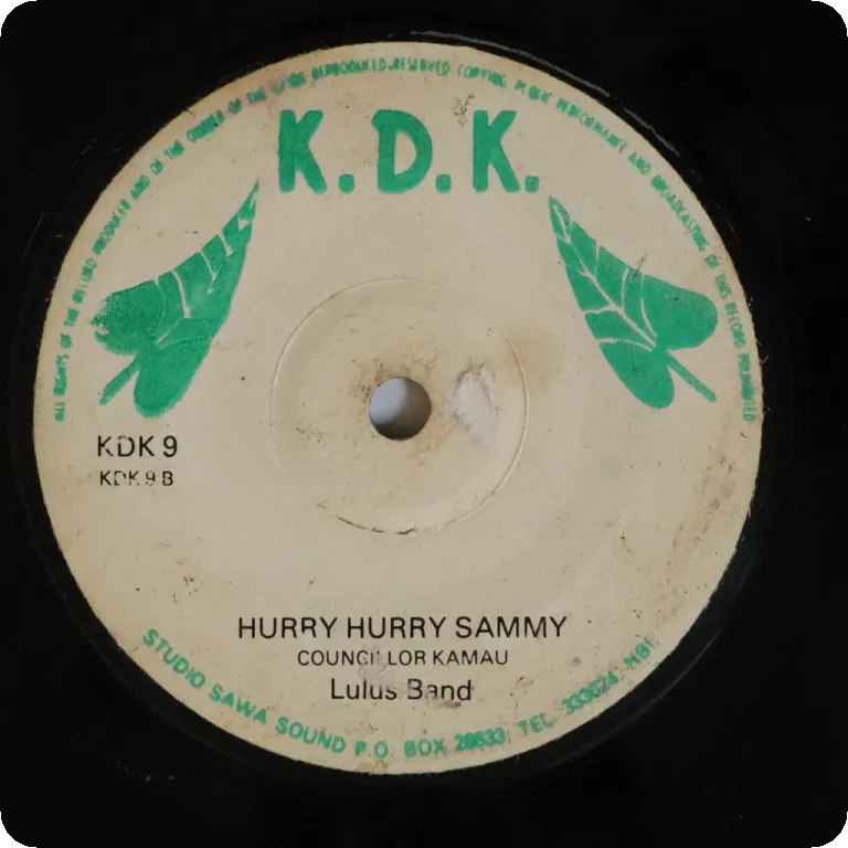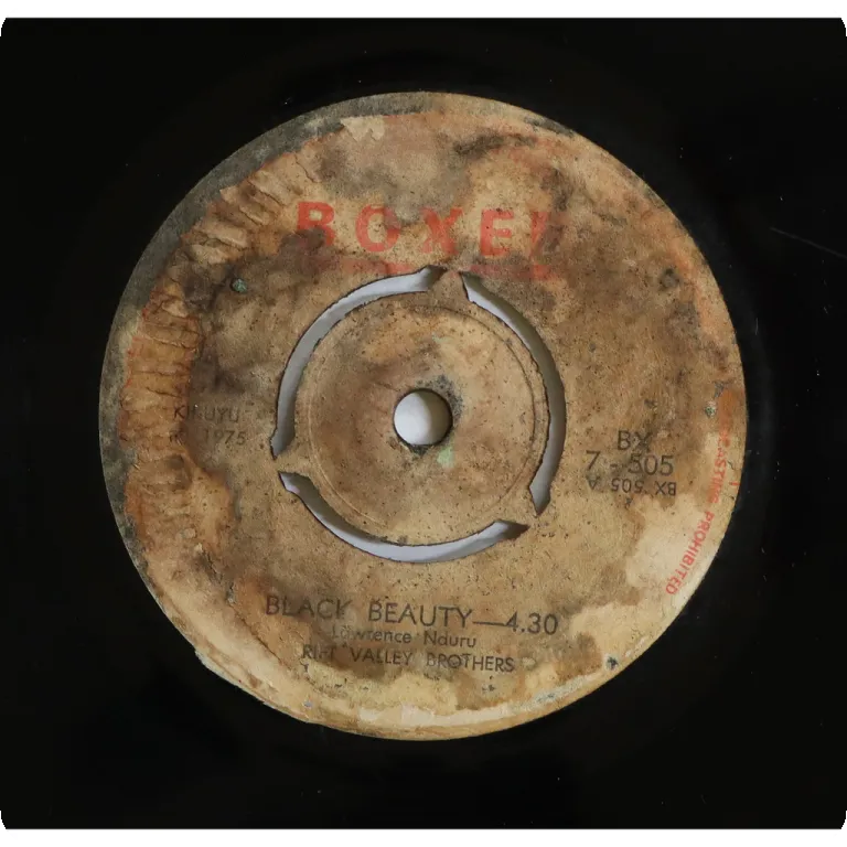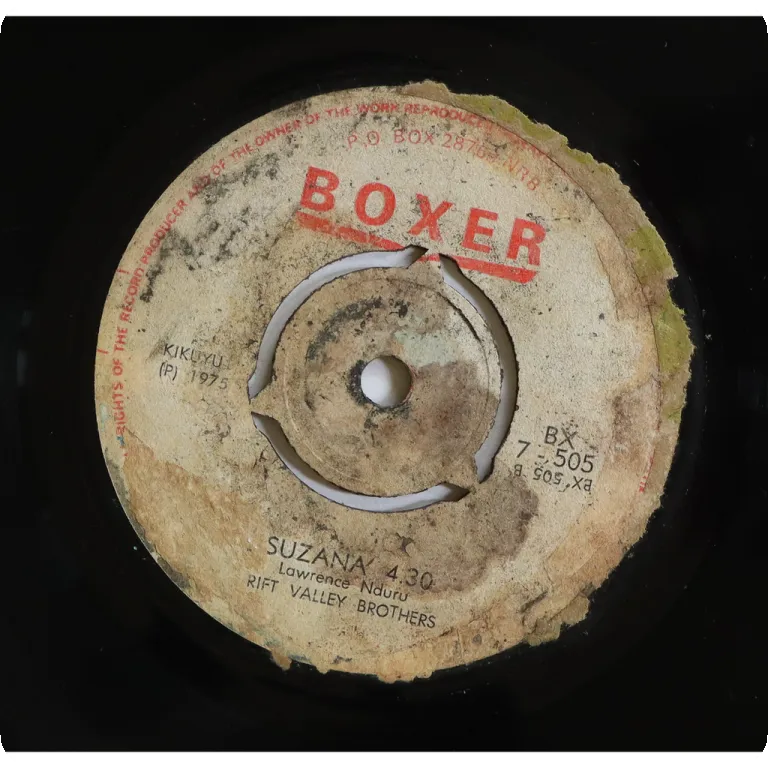 Ungoogleable Kenya benga double sider rarity by the sought after Kikuyu group. Strong wear & some peel off on labels. Record is VG- to VG, reasonable to hardly noticeable noise, some clicks on A side from a more problematic mark