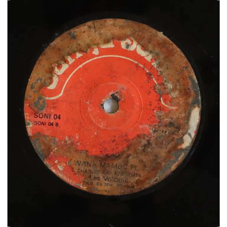Ungoogleable Kenya or Tanzania swinging soukous winner tune sung in swahili. Wear & paper stuck on labels & large peel off & dirt on B side label, record has marks, noise in parts, particularly on B