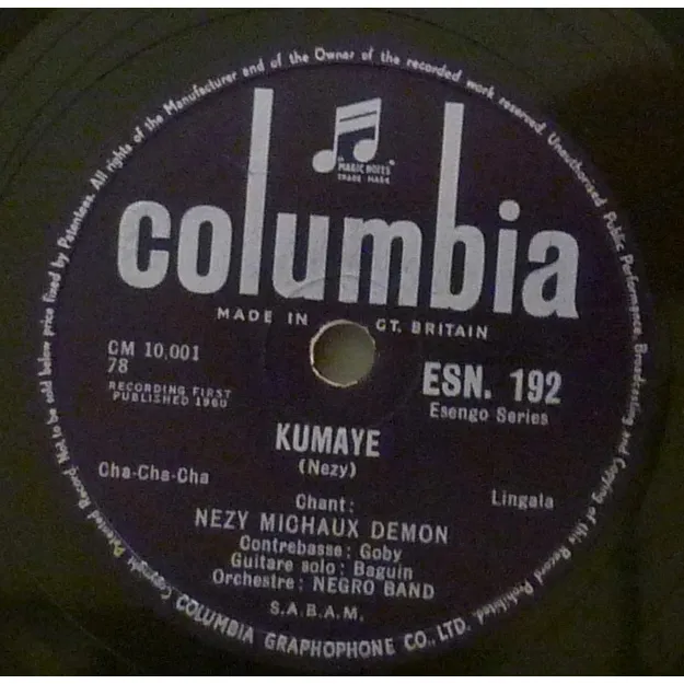 Early Congolese rumba & chachacha on scarce 78 rpm on Esengo Columbia UK, record plays with light noise from pressing & few thin marks, very nice shape.