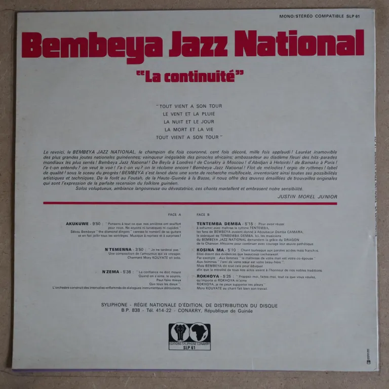 Guinean Manding music at its best, "Akukuwe" has long horn and guitar solos, raw vocals. Sleeve has minor wear, writings on labels. Record plays w/ light to hardly noticeable noise from surface marks most of the time, occasional clicks, ranges from VG- to VG/VG+