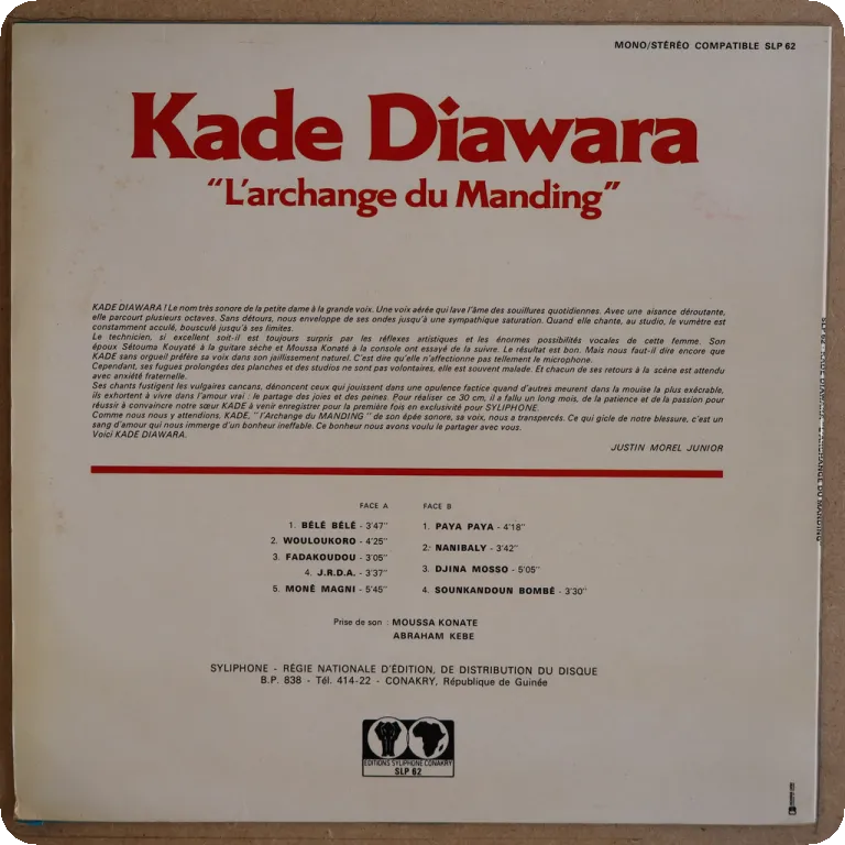Guinean manding music on top ! Some wear on cover, creases, rubber stamps on cover & labels. Record has light noise from marks to hardly any noise on second part of each side.