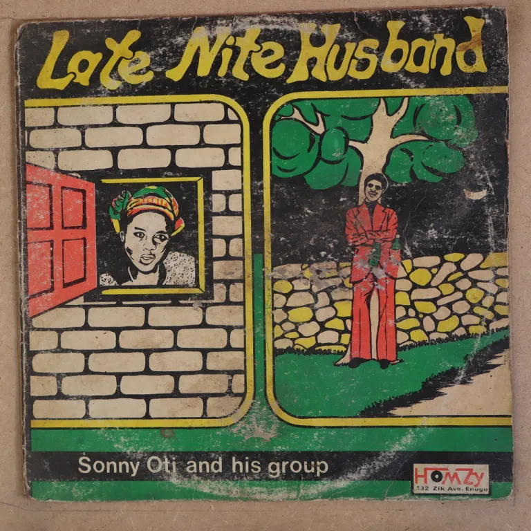 Consistent Nigerian ibo highlife rarity w/ down & uptempo tunes. Dirt & aging on cover, peel off & beige water damage, strong ringwear. Record has very reasonable to hardly noticeable noise from marks