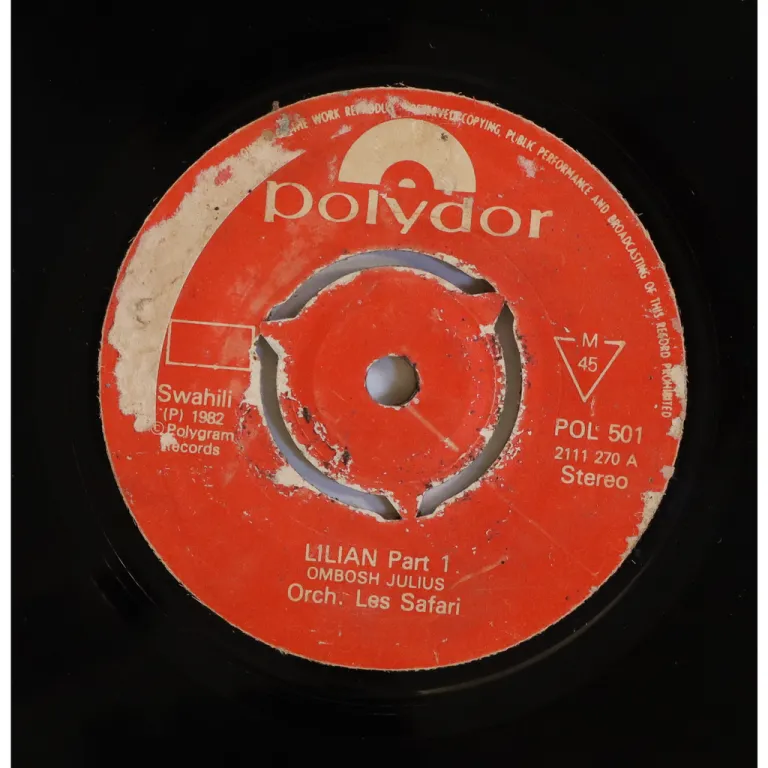 Ungoogleable Kenya or Tanzania swinging soukous winner tune sung in swahili. Wear & paper stuck on labels & large peel off & dirt on B side label, record has marks, noise in parts, particularly on B side (clip 2)