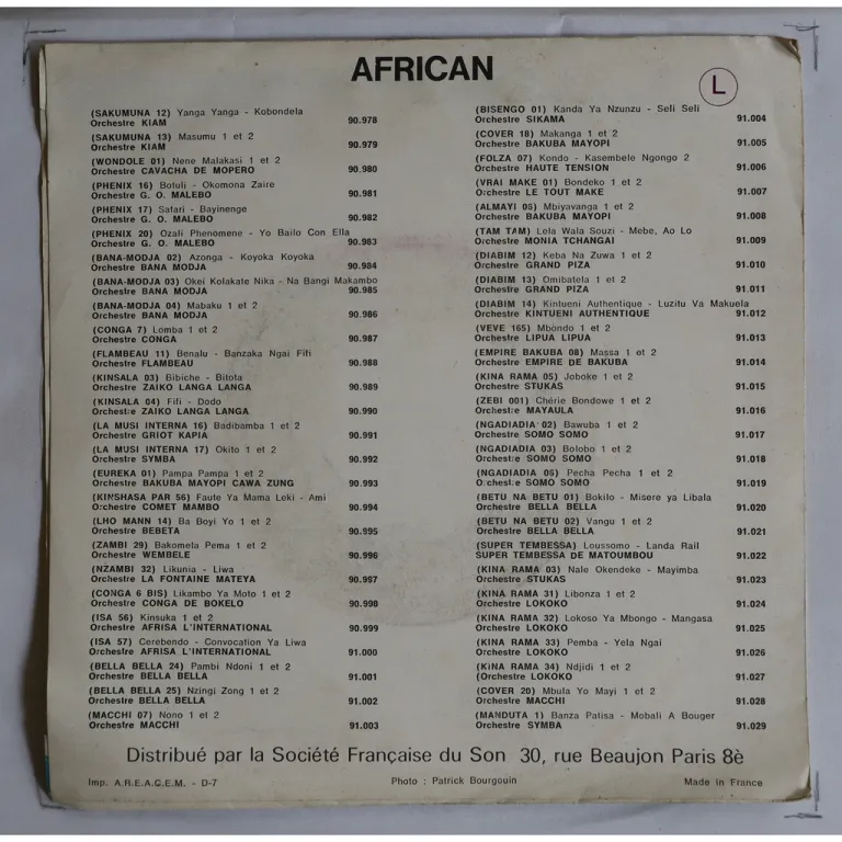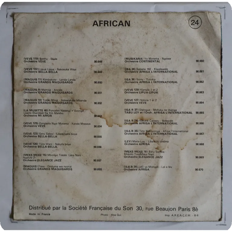 Soukous double sider by one of Congo's leading 70's bands. Some dirt on labels, record has reasonable to very light noise from numerous marks, crackier on first part then plays better, ranging from VG