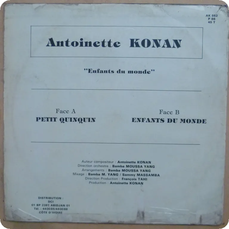 Tropical dancefloor afro synth pop from Cote d'Ivoire, powerful production, surely one of the next tropical deejays most wanted ! Sleeve has aging & dirt, mini bite on top spine, peeling of the upper