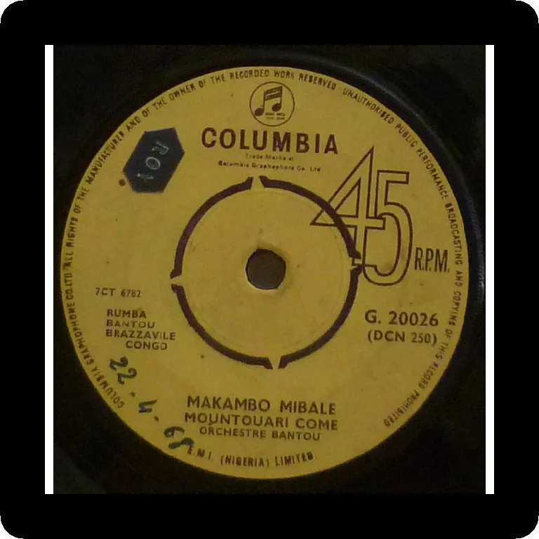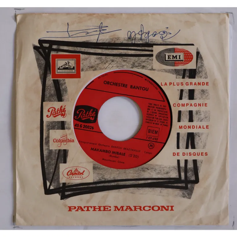 Rumba double sider rarity by the legendary Brazzaville orchestra, A side is single only, B side was later compiled on one of their 76 Pathe compilation lp's. Sleeve has some wear, creases, writings on
