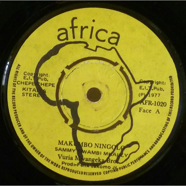 Uptempo hypnotic tropical dancefloor Kenyan soukous double sider. Some dirt on labels, noise from marks