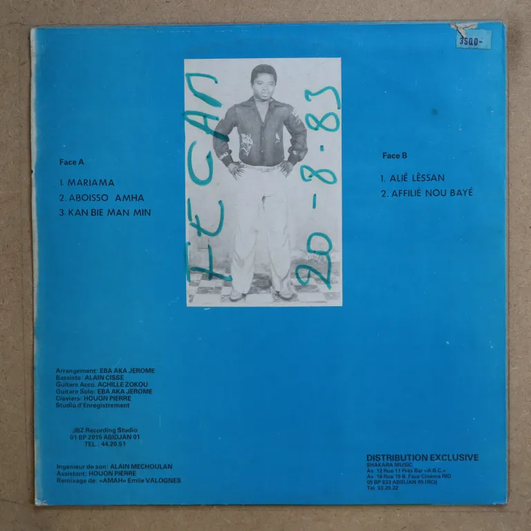A tropical dancefloor soukous & several afro pop tunes from Cote d'Ivoire, and surely on the gentleman's rarest albums. Sleeve has aging/dirt, small peel off on top front, writings on back, record has