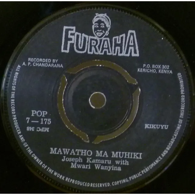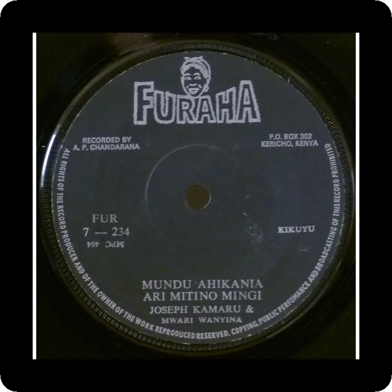 Male / female vocal duet w/ guitar as recorded by the Kenyan kikuyu legend, B side has a roosty folk tune w/ guitar & sticks & spoken word male monologue on intro. Minor noise from thin marks.
