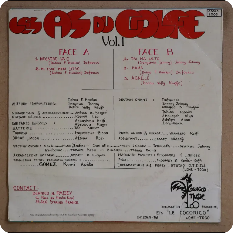 2 dancefloor soukous tracks on this LP by the Congolese guitarist. Sleeve hassome light wear & creases, but a bite on top mouth on back, dirt on labels, some air bubbles underneath upper plastic sheet along spine on back, sweet copy, record plays greatly w/ very light & very occasional noise and few very light marks.