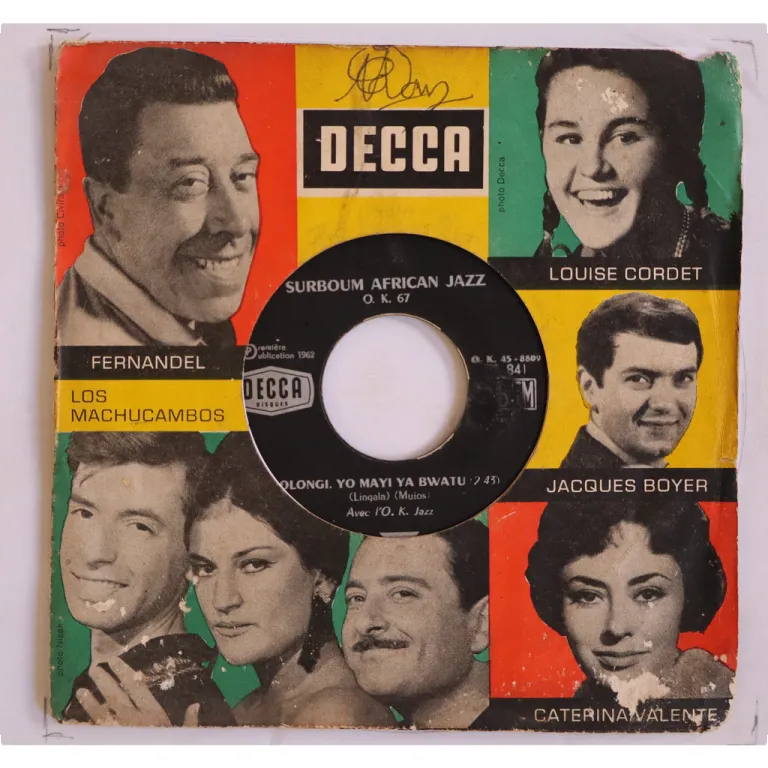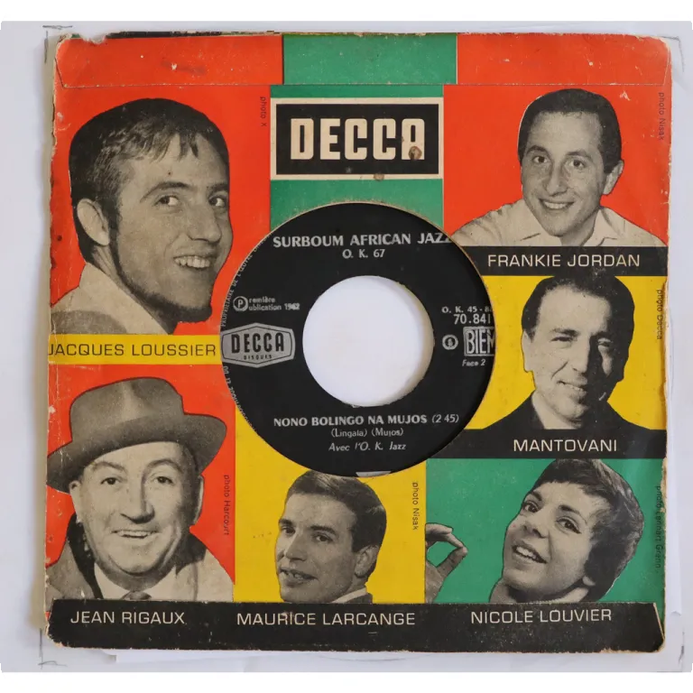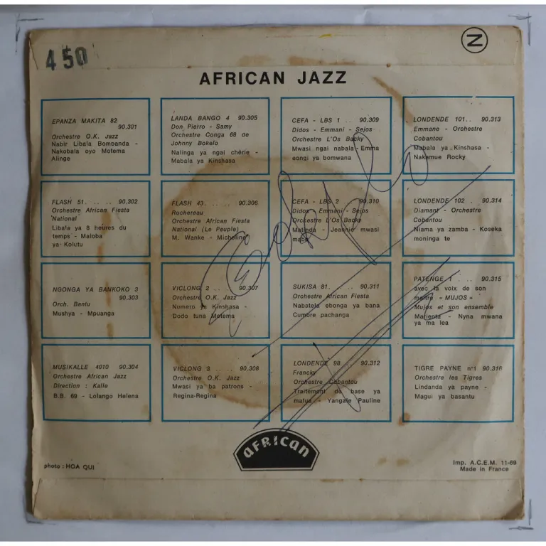 Congolese rumba single only double sider rarity with nice rhythmic instrumental parts 2, some aging & dirt on cover, writings on back & A side label, ringwear on back, record plays solid VG- to VG+, a bit noisy on first part of each side then plays much better.