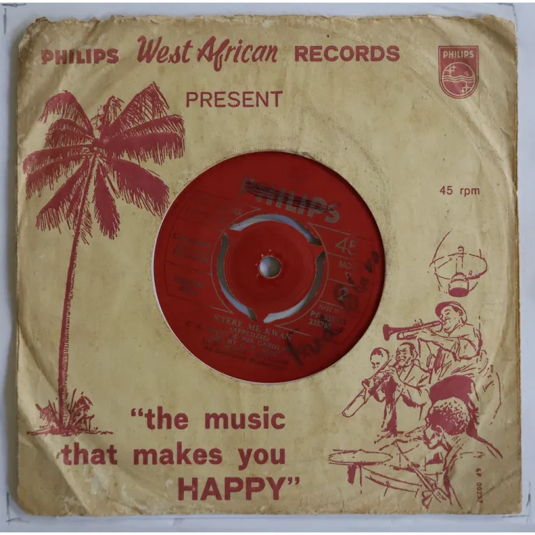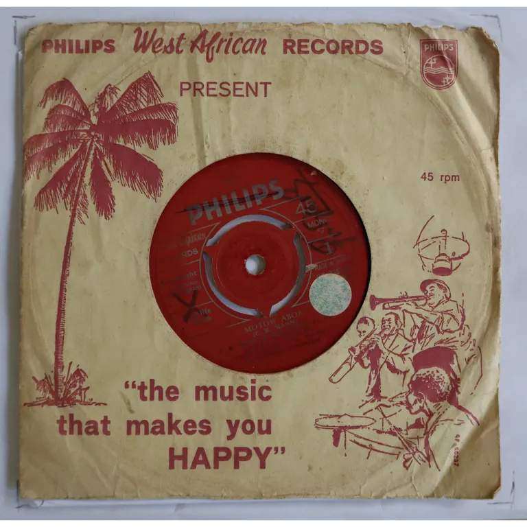 Single only highlife double sider early recordings by this Ghana artist with multiple hits in the 70's. Sleeve has aging & dirt, creases, mini bites along mouth. Fading of the text, writings on labels, sticker on A side label, record has light to extremely light noise, very solid VG- to solid VG.