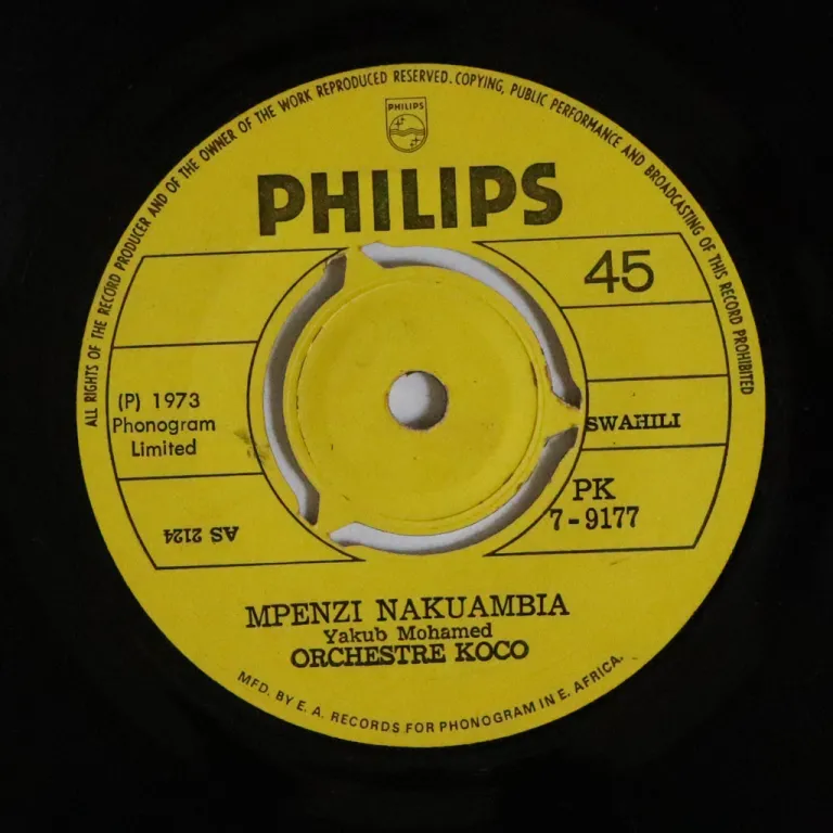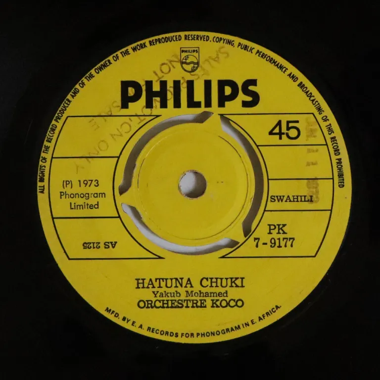 Ultra rare Tanzania psychedelic rumba winner sung in swahili. Some wear on B label. Record is weak to regular VG- w/ numerous marks & constant noise