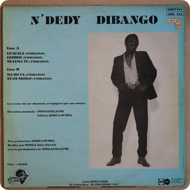 Check the super funky makossa "ma bo ya" & "esther" on this Cameroon LP directed by Toto Guillaume. Sleeve has minor wear, dirt, small price sticker on back, strong dirt on labels. Vinyl in top shape